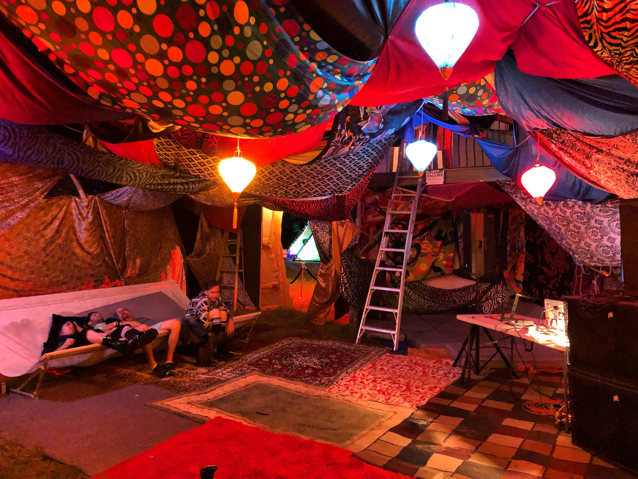 Come dance on our elevated brass stripper pole, relax on our giant hammocks, or snuggle up with a furry critter in our cushy climate-controlled cuddle cave! Enjoy the view from our load-bearing second floor balcony, or take a spin on our resident art car - the Venus Raver Trap