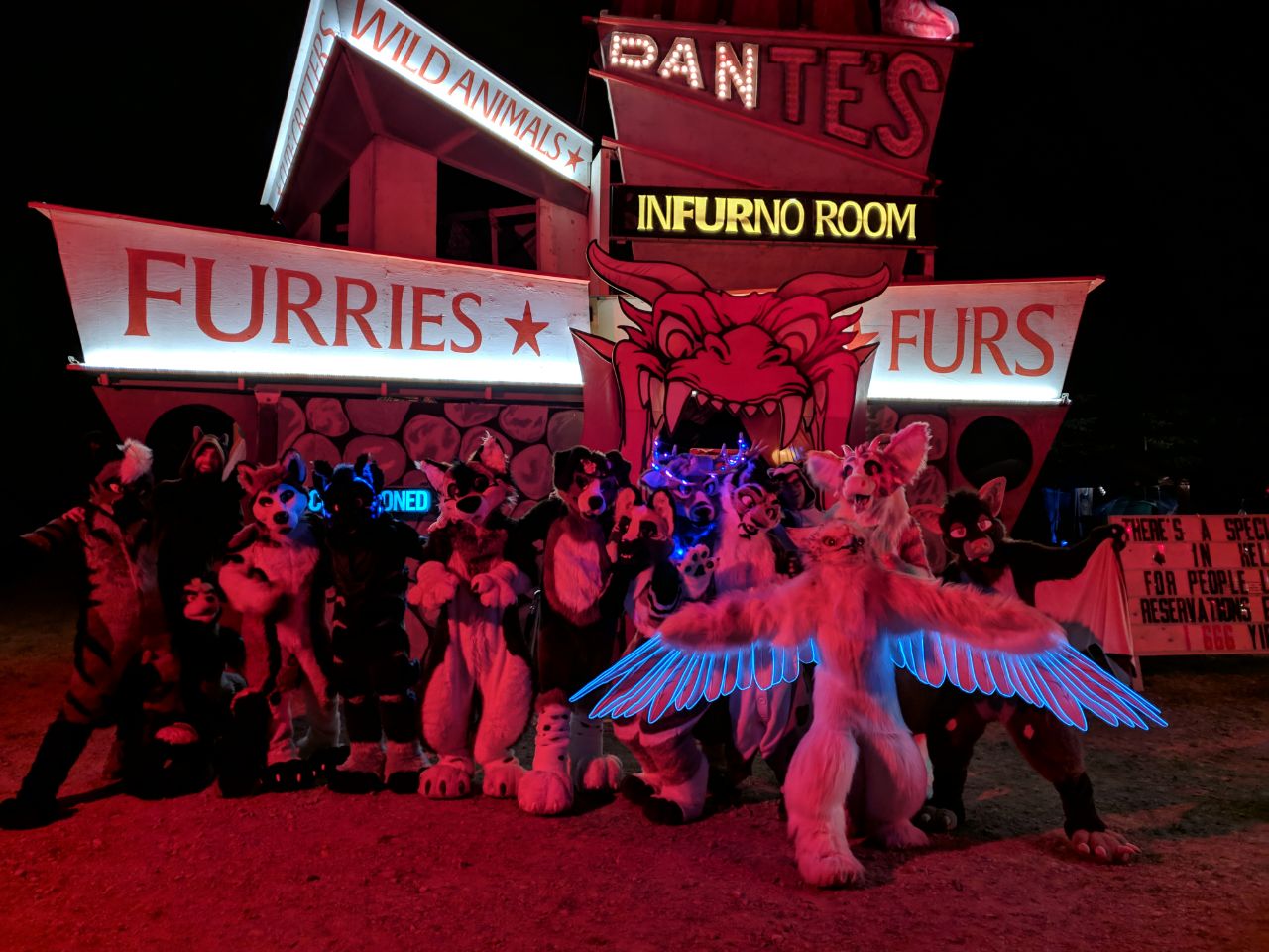 Out of concern for public image, some furry conventions and theme camps have tried to sweep the latter group under the rug and publicly shame those that are into it. We created Dante's as a place for us nighttime furs to proudly share that community with the playa, with an unapologetically raunchy, sex-positive strip club!